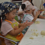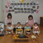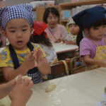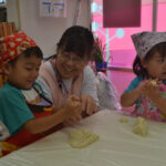 10月 お月見会 2025/10/10 Tweet お月見会をしました。 絵本の読み聞かせの中でお月見の由来を知ったり、「つき」の歌を歌いました。 そのあとは、エプロンとバンダナをつけて小麦粉粘土でお団子作りをしました。 大きい丸いお団子や小さいお団子、なが~いお団子、個性豊かなお団子がたくさんできていました。 ススキと子どもたちが作ったお団子のお土産をお家で飾ってお月様を見上げてみてくださいね。