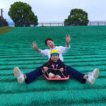 ウキウキしながら遊具で思い切り遊んだり、芝滑りをしたりとたくさん体を動かしてきました。
