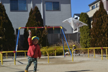 とてもいい風が吹いて、2歳児クラスのお友だちはコツをつかむと上手にあげられていました。