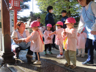 秋晴れの、雲一つない青空の下七五三詣りに行きました。みんなで…